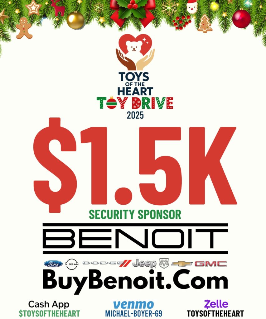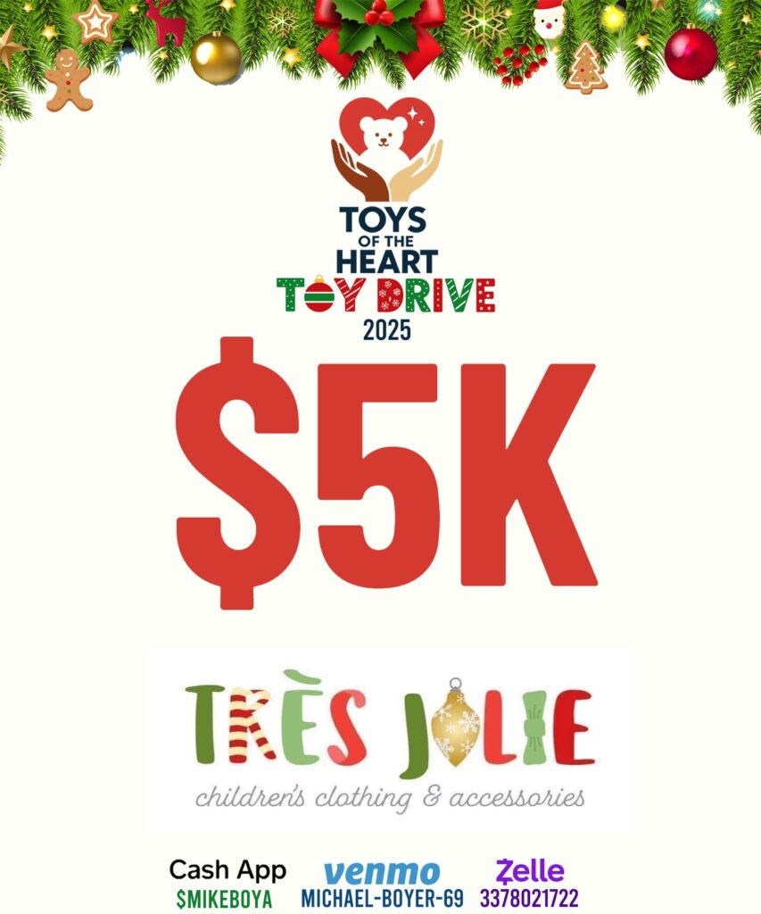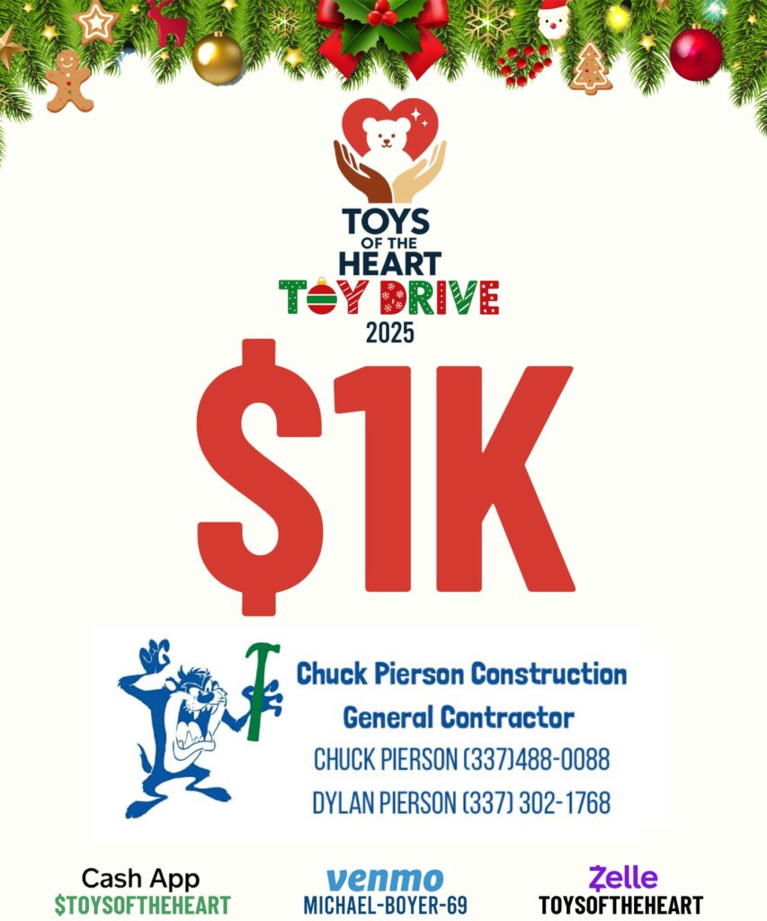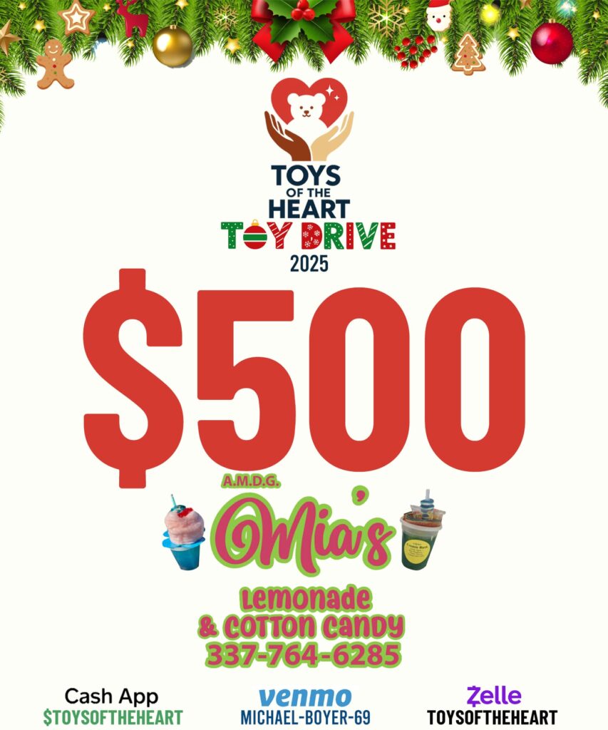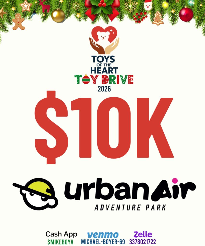 Join the community for Michael Boyer’s 6th Annual Toys of the Heart Toy Drive on December 24th at 5:30 PM, ending at Urban Air Adventure Park, located at 4070 Ryan St., Lake Charles, LA 70605. Families are encouraged to line up no earlier than 4:00 PM.
